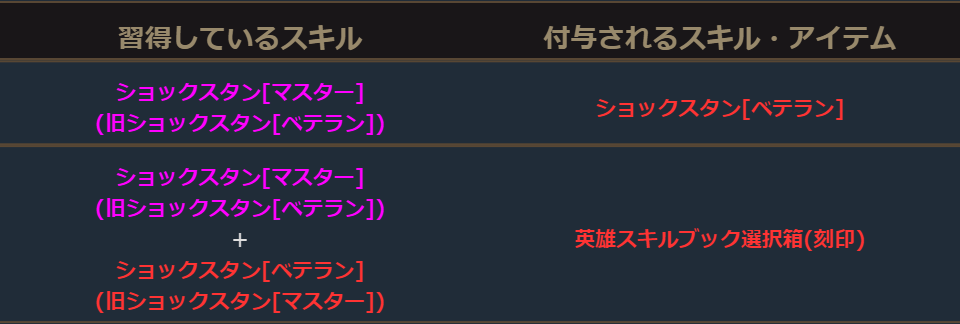 すでに先行スキルを習得している、あるいは先行スキルのスキルブックを所持している場合、先行スキルと同職業同等級のスキルブックを選択して獲得できるアイテムを付与いたします。