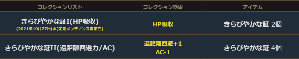 パッケージに付属する「きらびやかな証」を材料としてイベントコレクションに登録することができます。