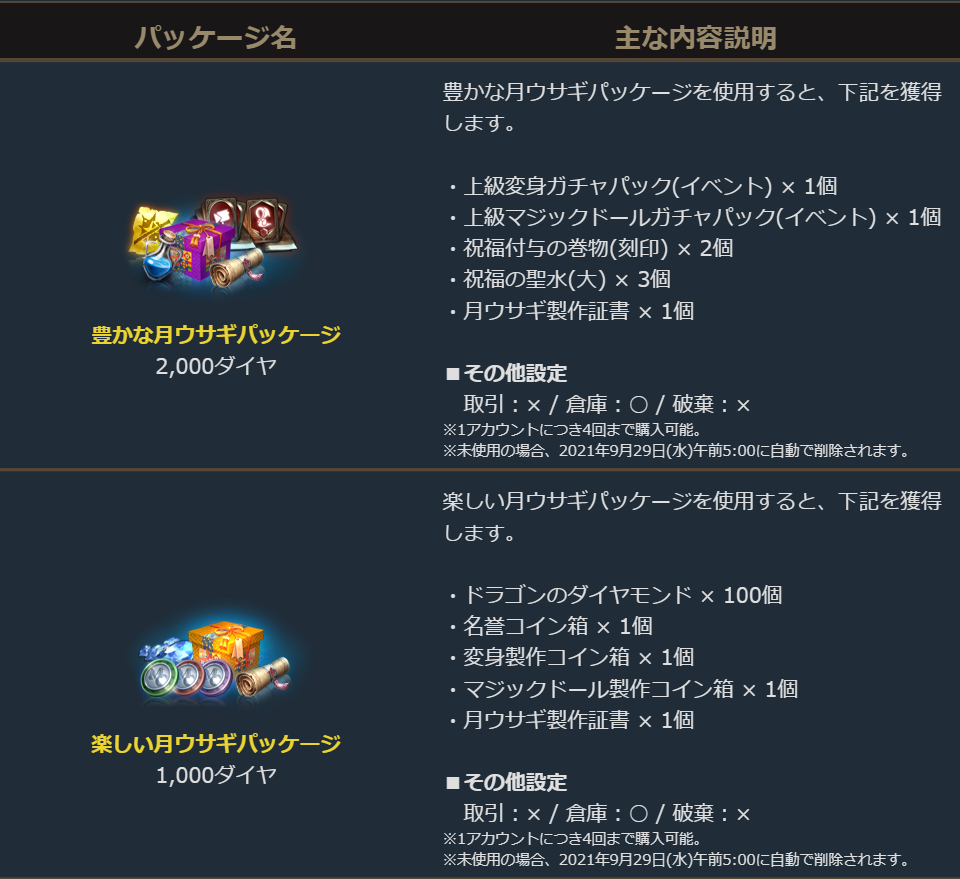 2021年9月22日より、ゲーム内ショップで「ナルエンの月ウサギパッケージ」の販売を開始しました。
