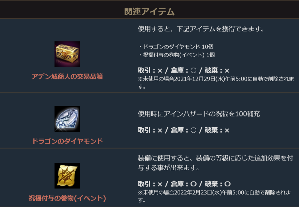 2022年12月22日より販売を開始しました「アデン城商人の交易品」に関しまして、ご案内を申し上げます。