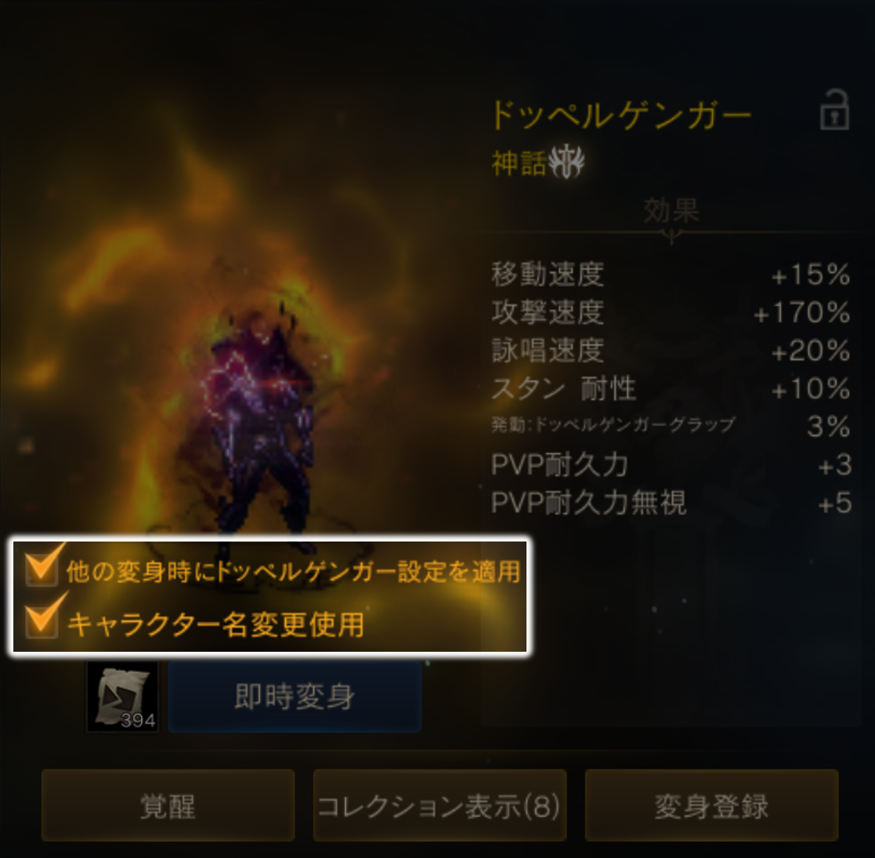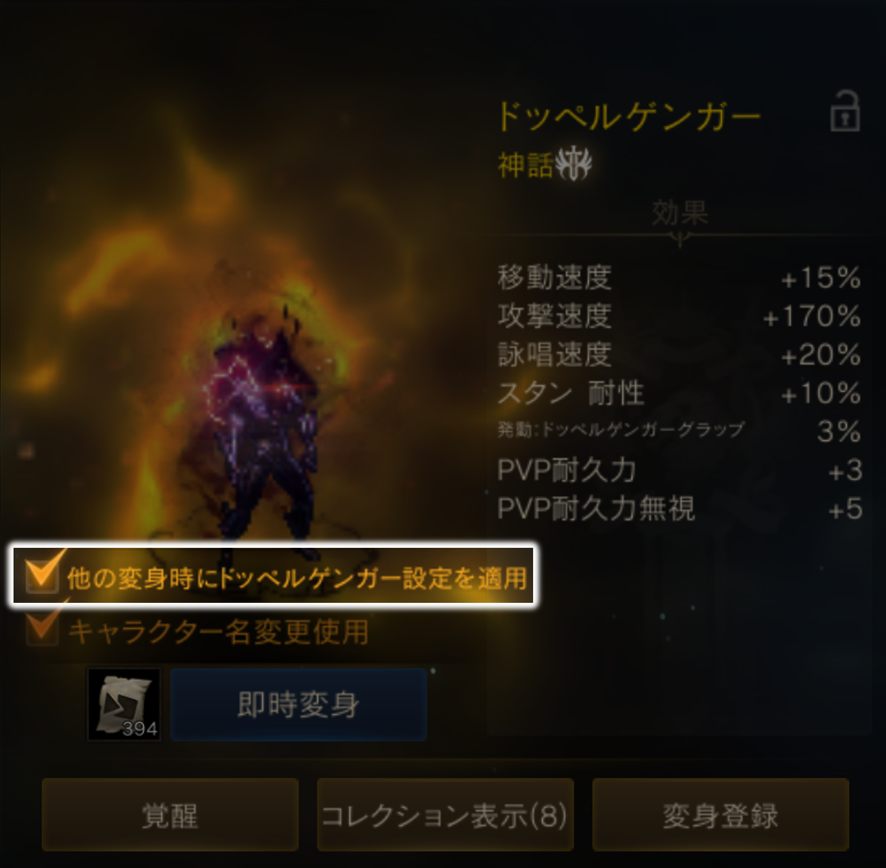 ・新たな神話級変身「ドッペルゲンガー」を実装しました。
