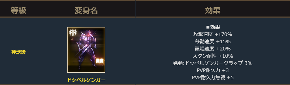 新たな神話級変身「ドッペルゲンガー」を実装しました。