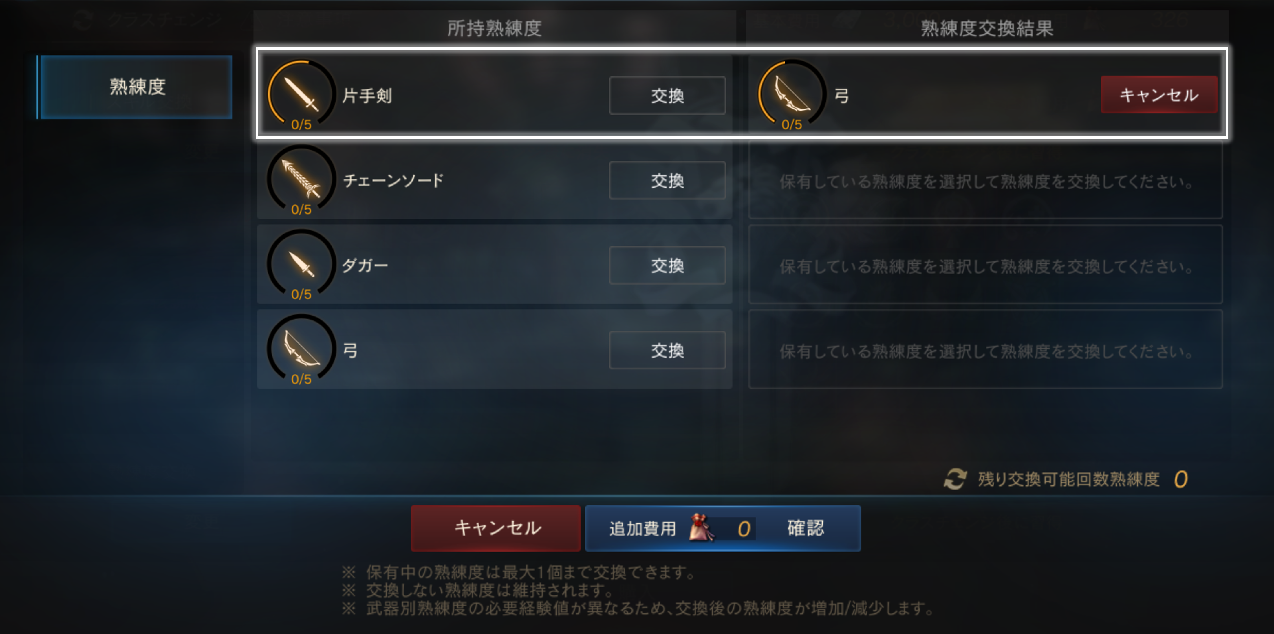 STEP.6 熟練度交換で、特定の武器熟練度を選択した職業に対応した熟練度に合算できます。