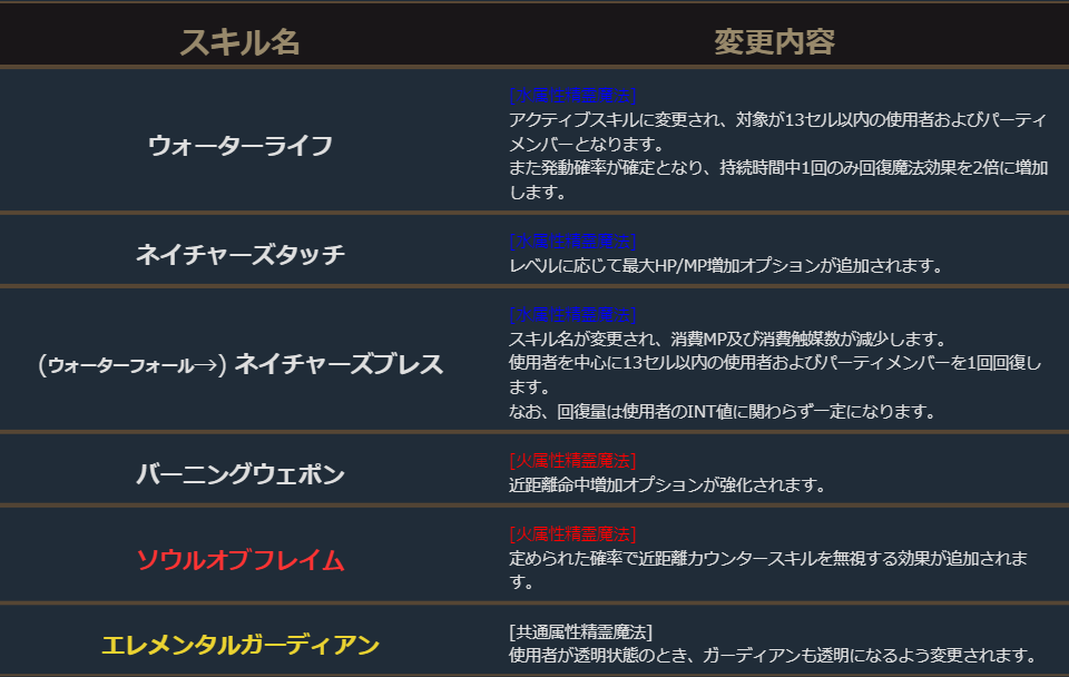 既存スキルの名称変更やスキル内容のリニューアルが含まれています。