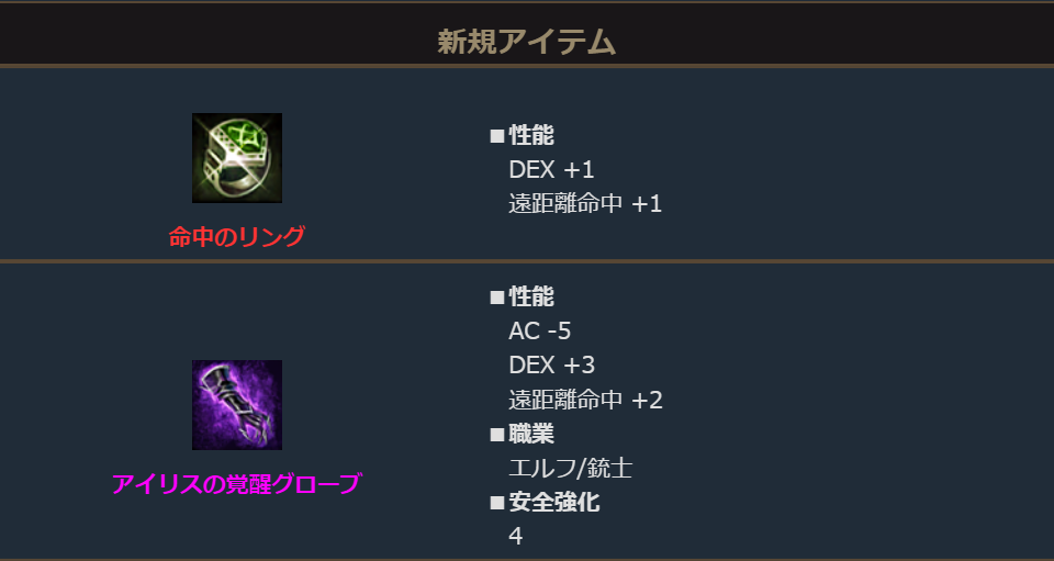 遠距離職業向けの2種類の装備アイテムを実装しました。