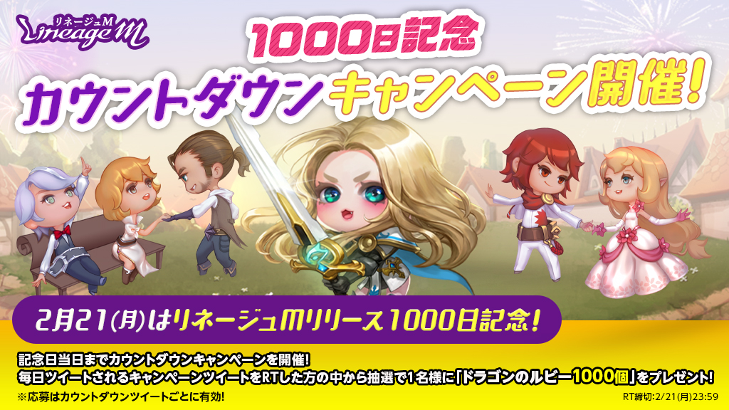 リネージュMリリース1000日記念までカウントダウンを行う、「1000日記念カウントダウンキャンペーン」を開催いたします!