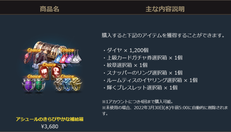 2022年2月23日より販売を開始しました「アシュールのきらびやかな補給箱」のご案内を申し上げます。
