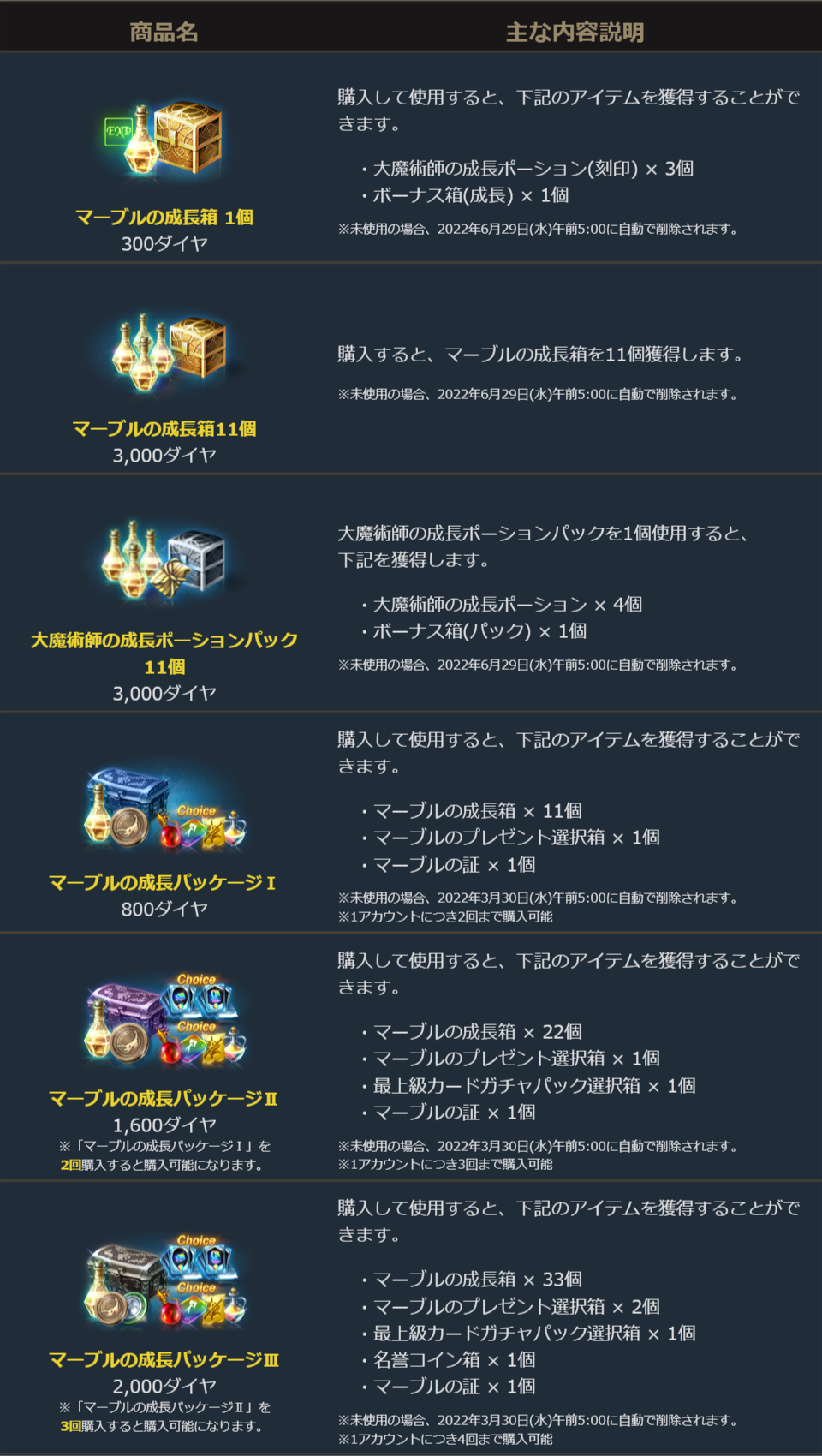 2022年2月23日より、ゲーム内ショップで「マーブルの成長箱」の販売を開始しました。