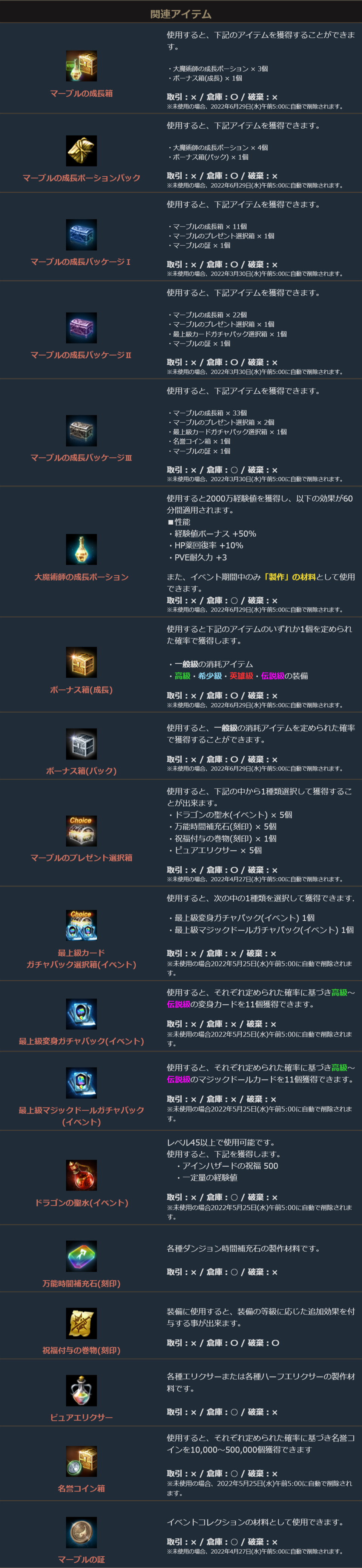 ※一部アイテムは未使用の場合、一定期間が経過すると自動で削除されます。詳しくは各アイテムの詳細をご確認ください。