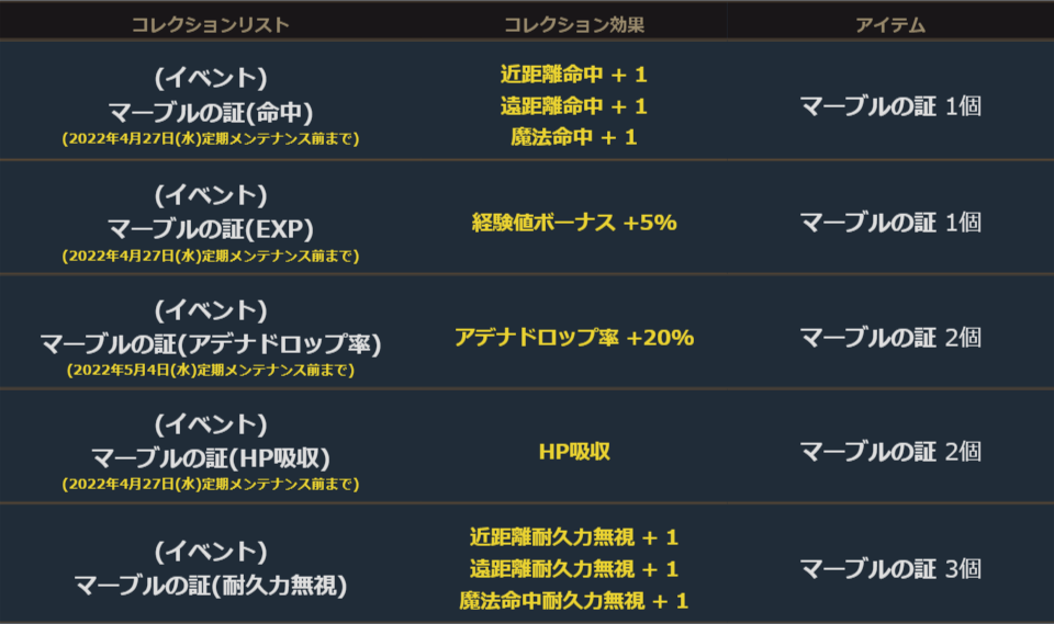 パッケージに付属する「マーブルの証」を材料として期間限定のコレクション登録ができます。