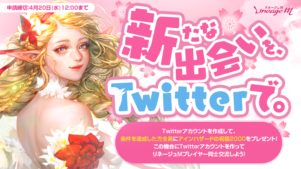 Twitterアカウントを作成し、条件を満たした方全員に「アインハザードの祝福」を2,000プレゼントする、「新たな出会いを、Twitterで。」キャンペーンについてご案内いたします。