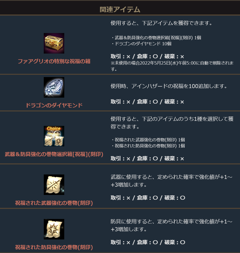 ※一部アイテムは未使用の場合、一定期間が経過すると自動で削除されます。詳しくは各アイテムの詳細をご確認ください。