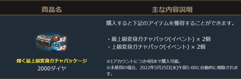 2022年4月20日より販売を開始しました「輝く最上級変身ガチャパッケージ」のご案内を申し上げます。