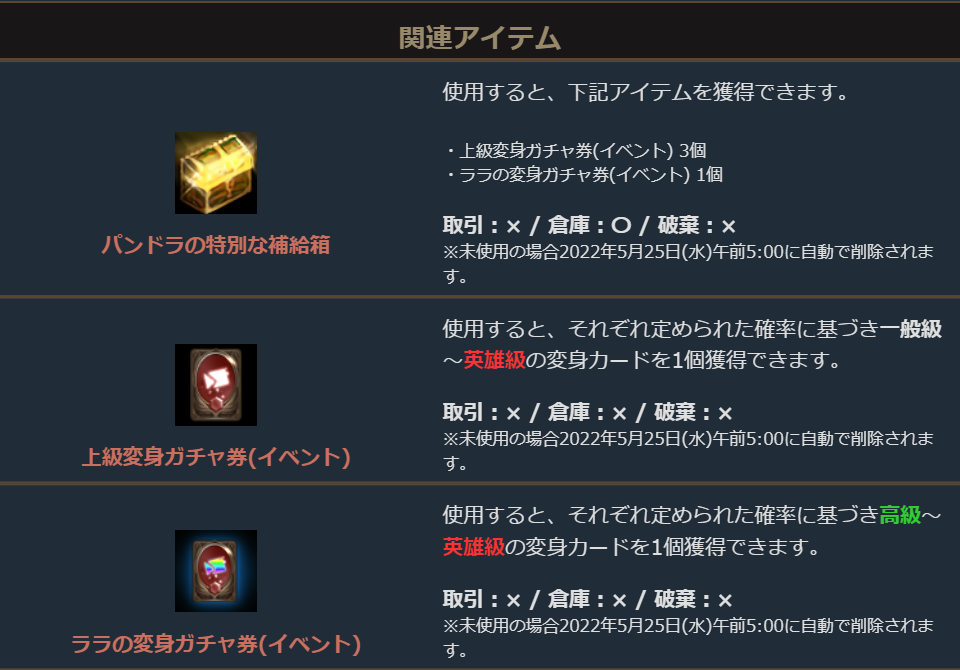 2022年5月4日より販売を開始しました「パンドラの特別な補給箱」のご案内を申し上げます。
