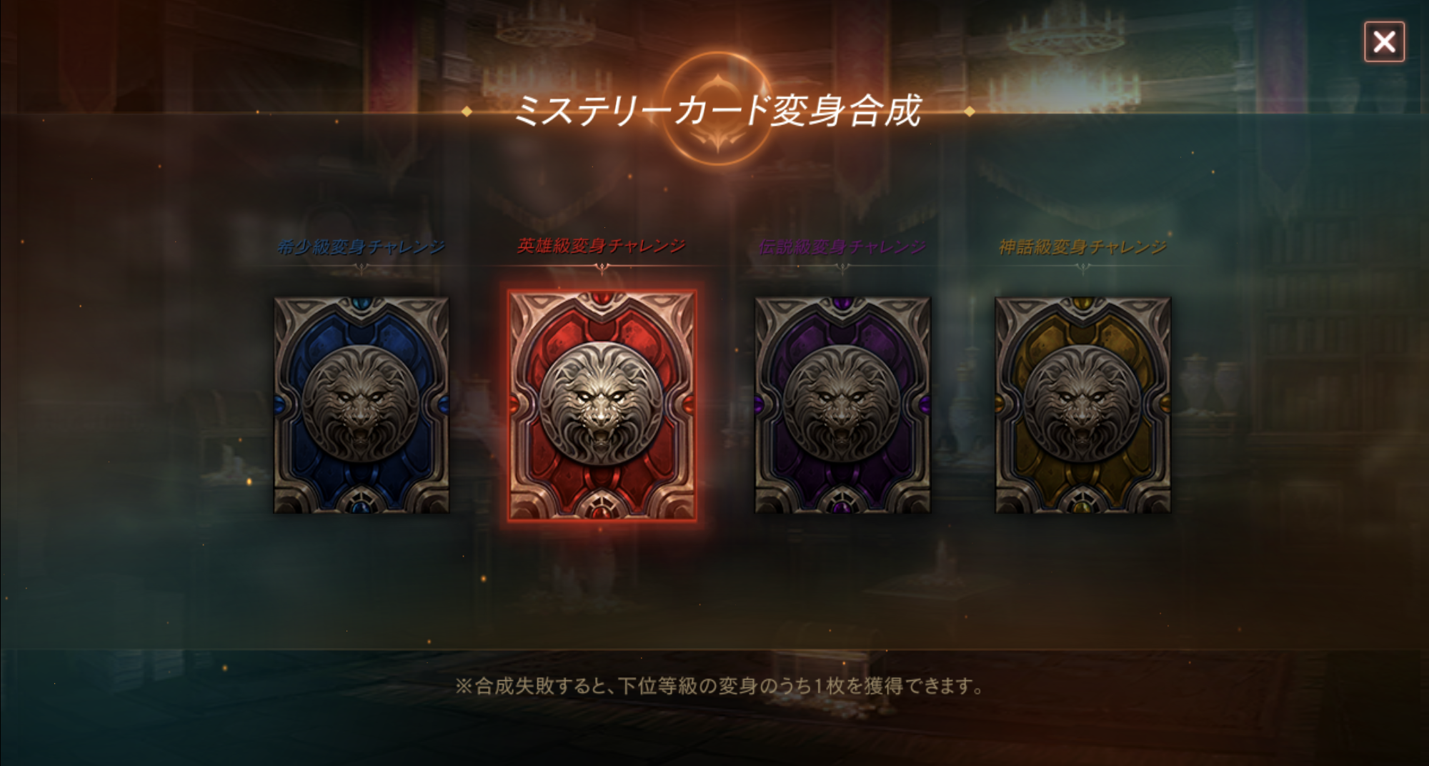 使用すると希少級合成を通じて、英雄級変身/マジックドールカードの獲得に挑戦できます。