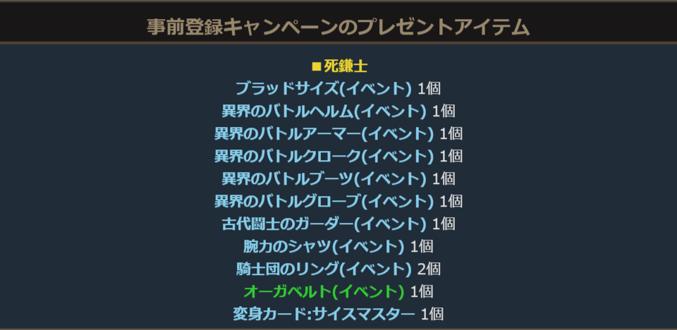 新職業「死鎌士」の実装を記念して、「事前登録キャンペーン」を開催いたします。