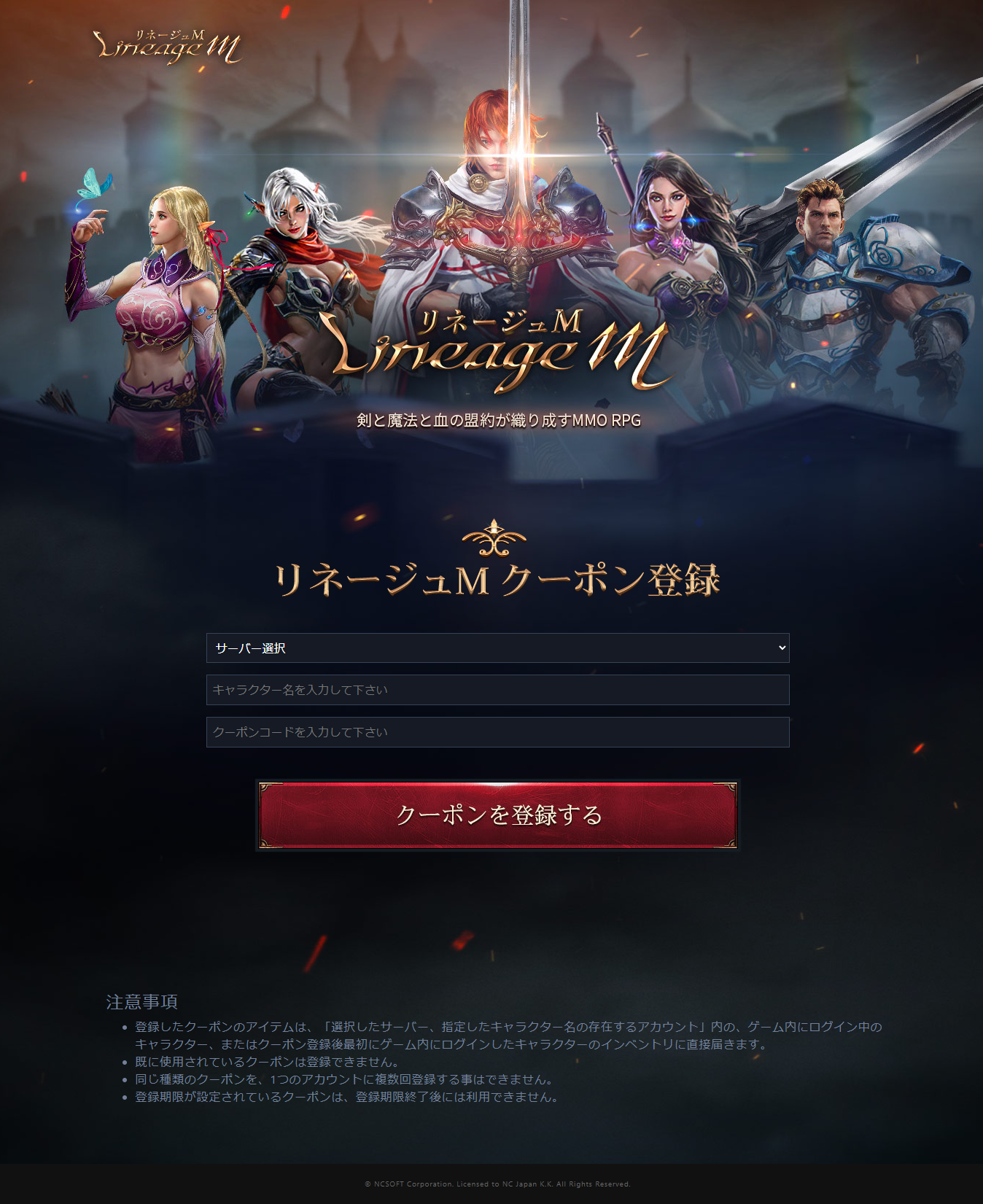 ※事前に該当するキャラクターを作成の上「クーポン入力ページ」のご利用をお願い致します。