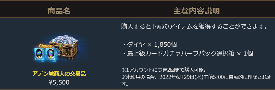 ダイヤと最上級カードガチャハーフパック選択箱がセットになったお得なパッケージです。