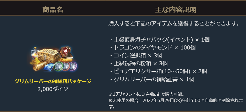 2022年5月25日より販売を開始しました「グリムリーパーの補給箱パッケージ」のご案内を申し上げます。