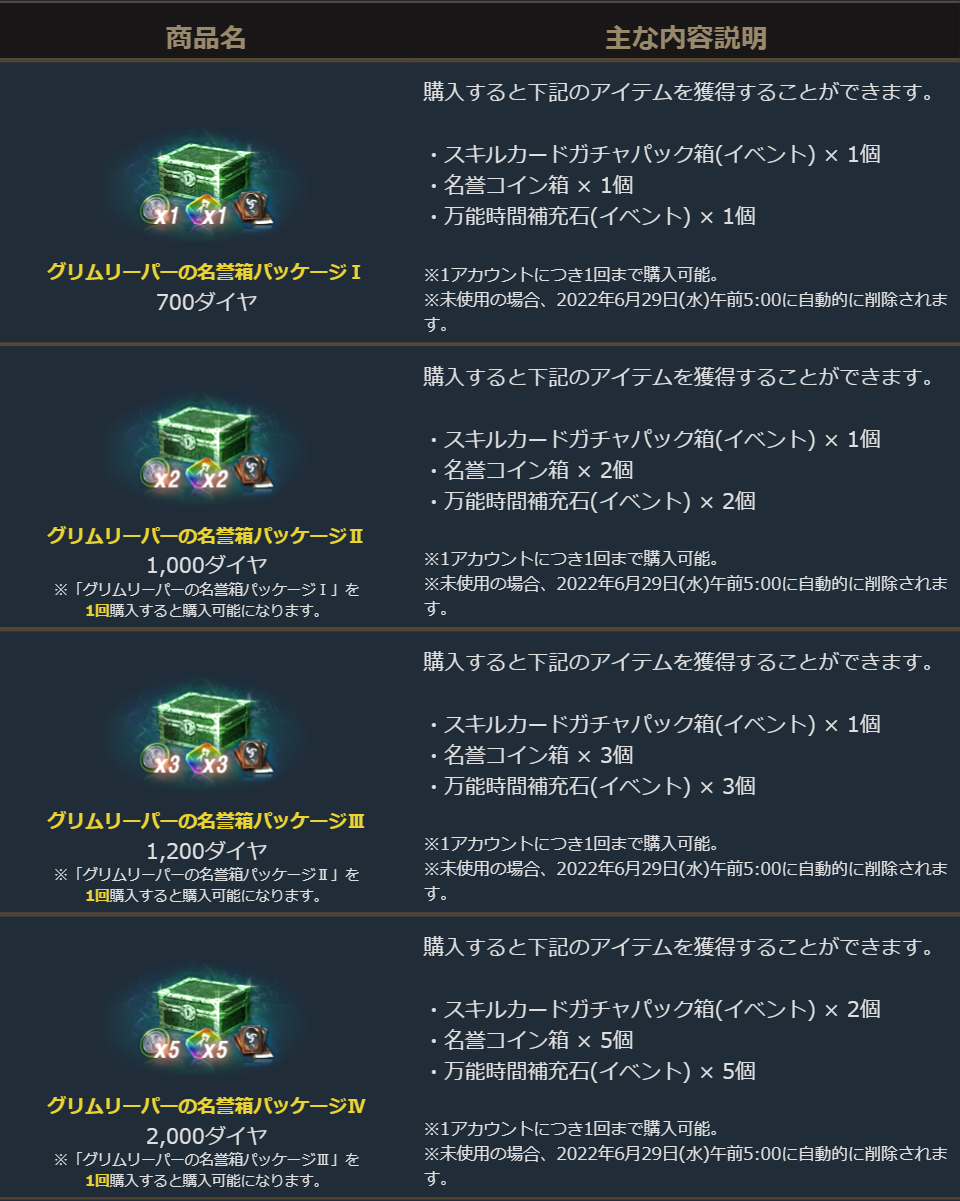 2022年6月8日より販売を開始しました「グリムリーパーの名誉箱パッケージ」のご案内を申し上げます。