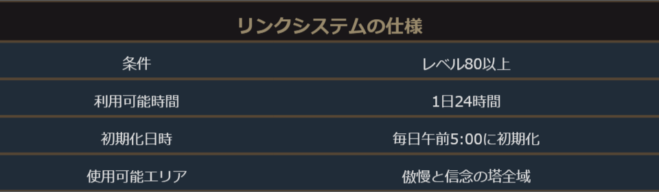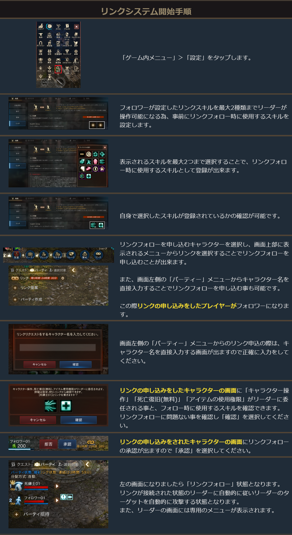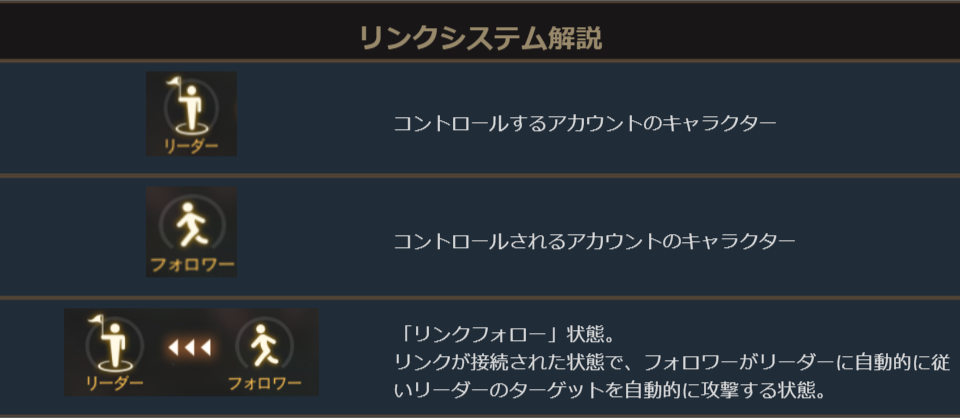 「リンクシステム」は特定のダンジョンでのみ使用可能な、同一のサーバーでログインしている別アカウントのキャラクターと一緒に自動でキャラクターの追尾や同じモンスターの攻撃等のサポートをしてもらえる新しいシステムです。