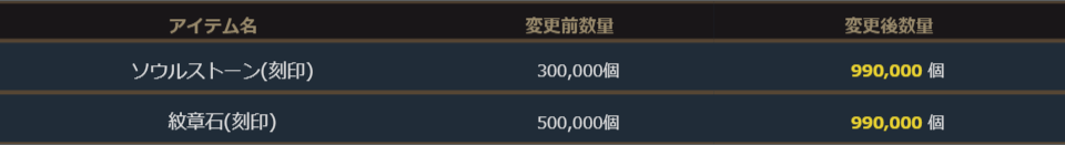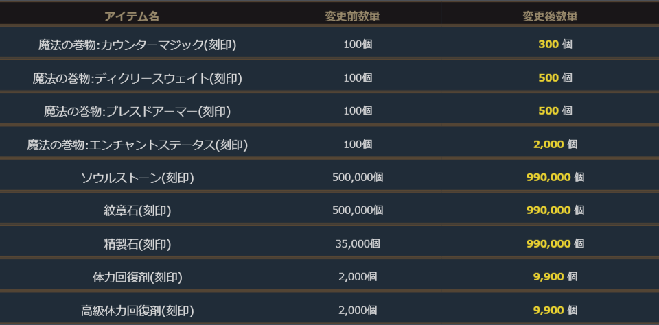 一部のアイテムにつきまして、キャラクターの「最大所持数」と「ショップ一括購入」の上限を変更致しました。