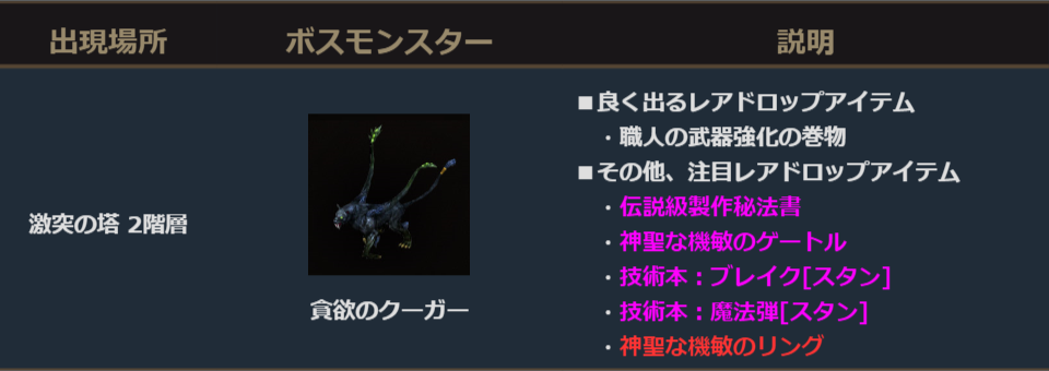※ドロップは定められた確率での出現となりますので、討伐時に上記アイテムが必ずすべてドロップするというわけではございません。