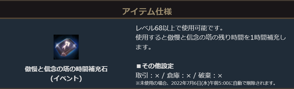 また、期間中毎日午前10時に郵便にて「傲慢と信念の塔の時間補充石(イベント)」を1つ配布いたします。