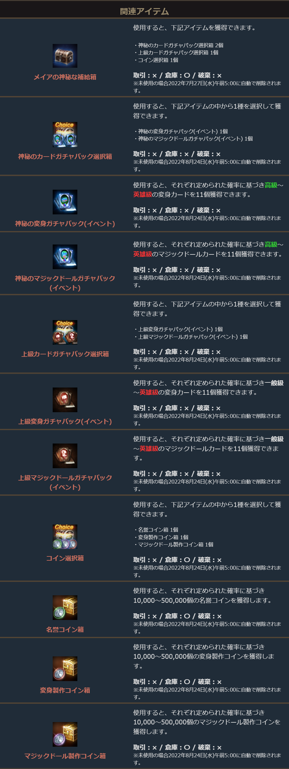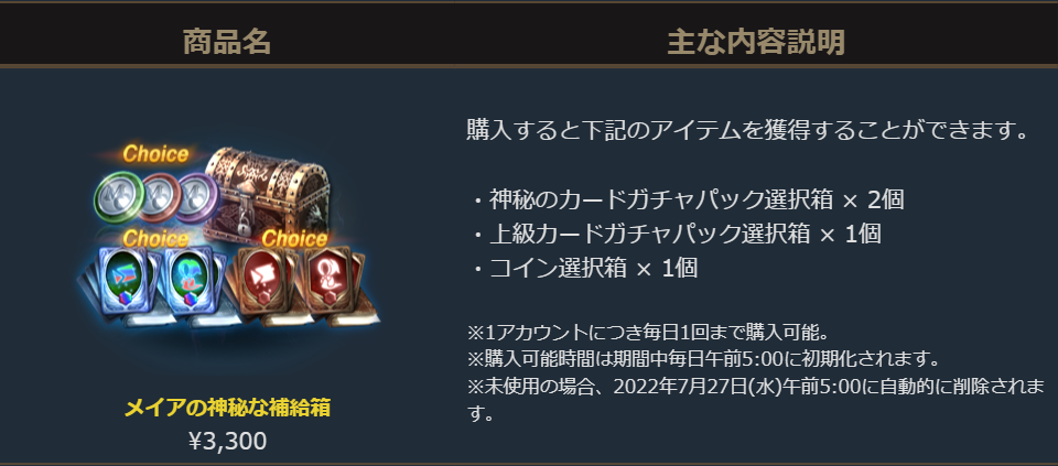 2022年6月22日より販売を開始しました「メイアの神秘な補給箱」のご案内を申し上げます。