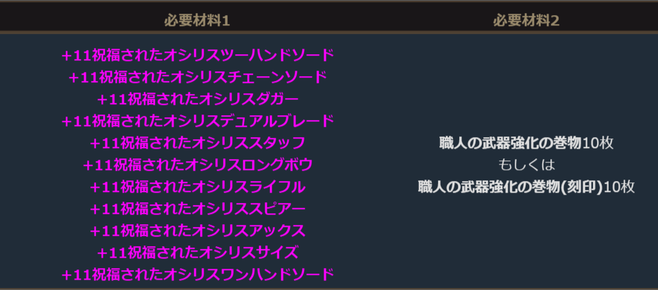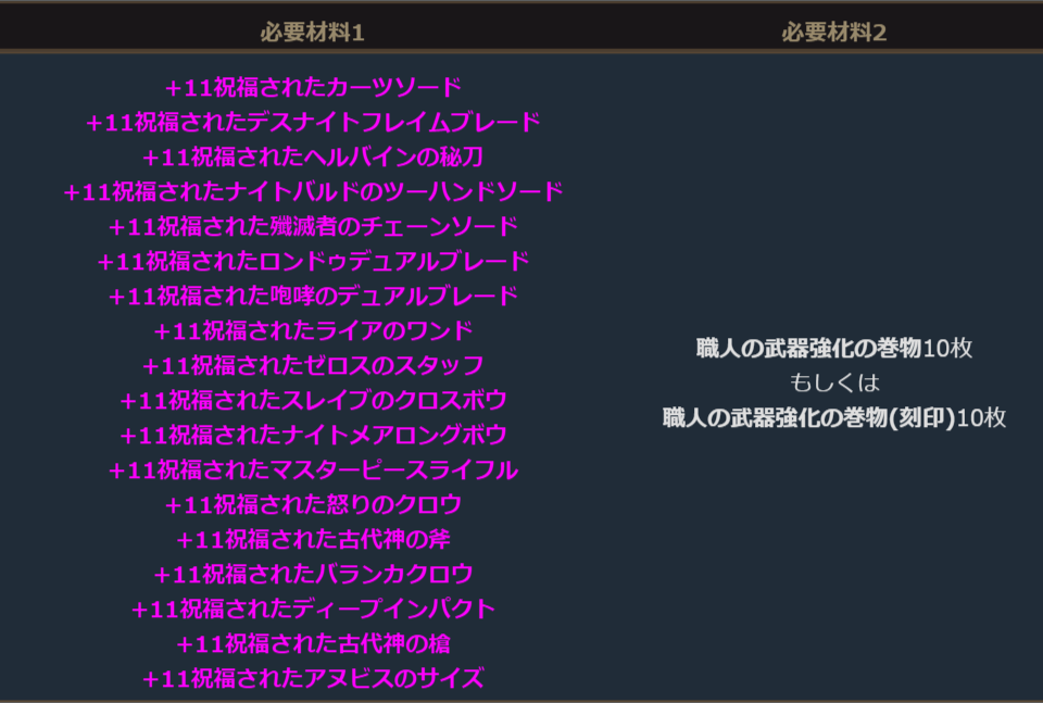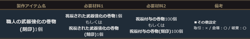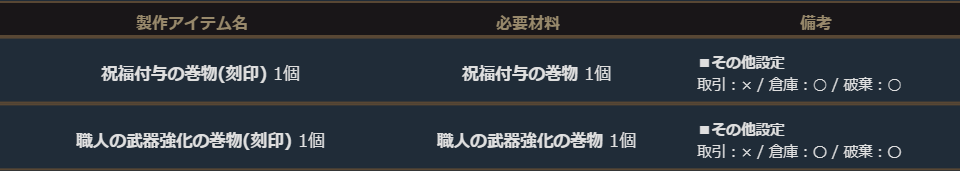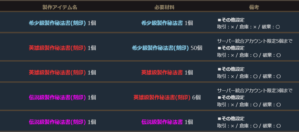 各等級の「秘法製作書(刻印)」を複数素材にする事で1段階上の等級の「秘法製作書(刻印)」の製作が可能になりました。