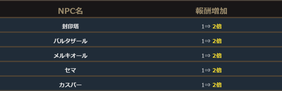 イベント期間中、「特定の難易度のパーティダンジョン報酬が増加」します。