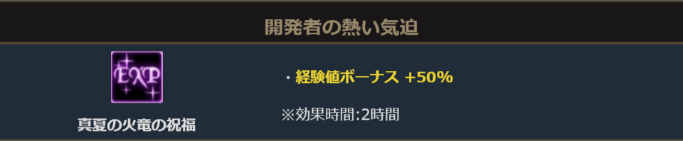 イベントダンジョン「火竜の巣」内部では、アデンの勇士を応援してくれるNPC「カッコよくて優しいイケメン開発者」より支援魔法「開発者の熱い気迫」を貰う事ができます。