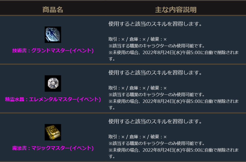 2022年8月3日(水)より開始のイベント「Summer Festival Re:スキルブック交換」についてご案内申し上げます。