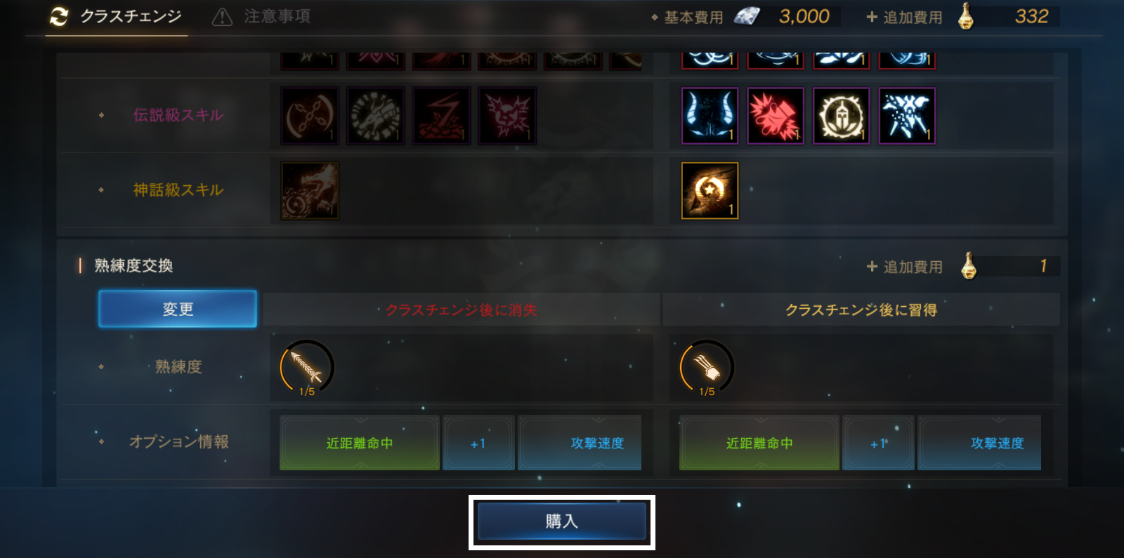 クラスチェンジは、アカウントごとに1回のみ購入可能です。