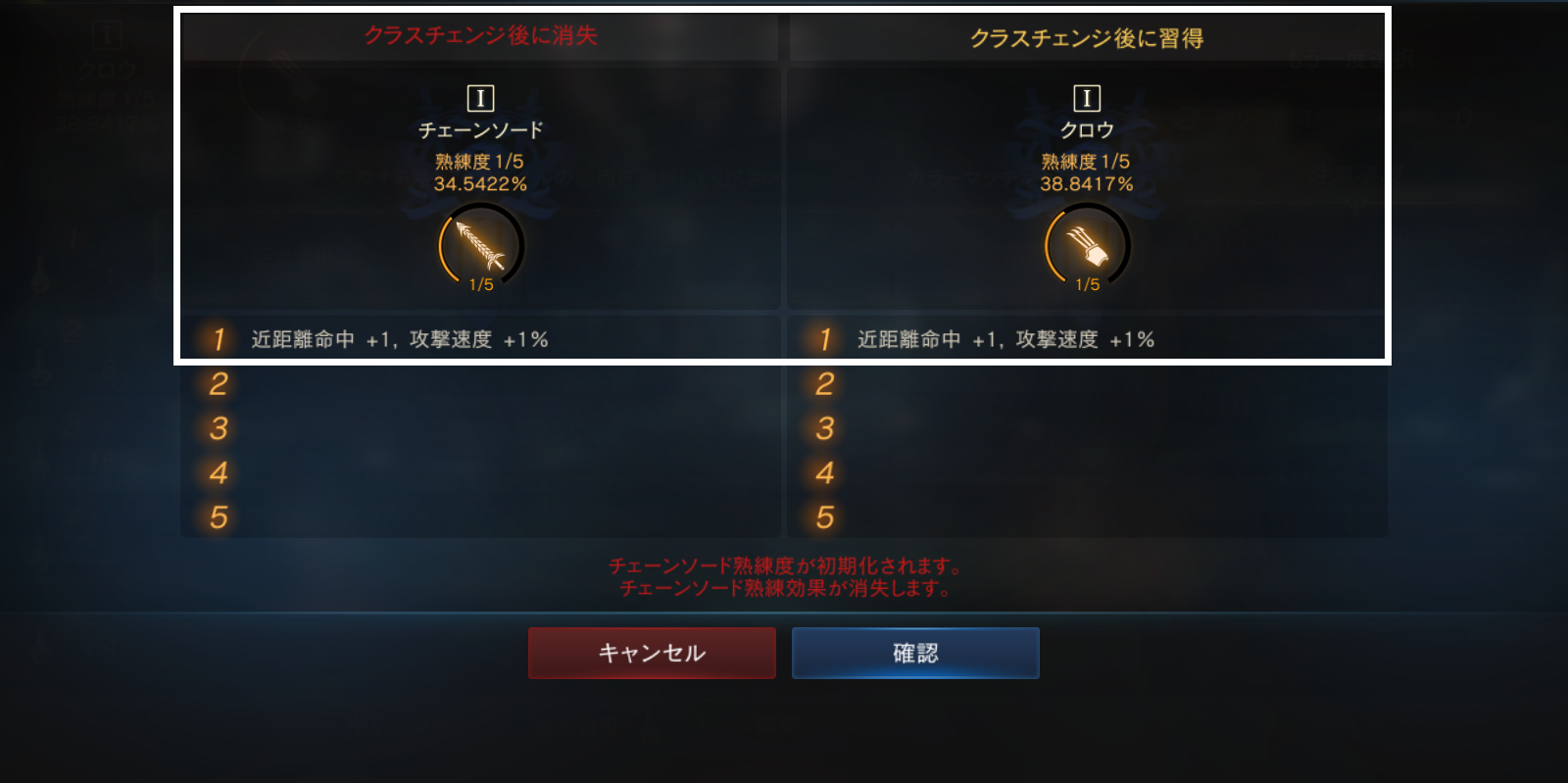 また、クラスチェンジの下記手続き以外では、装備やスキル交換は出来ませんので必ず忘れずに行ってください。