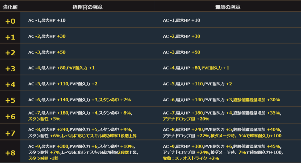 「腕章」は、腕章強化の巻物によって強化可能であり、強化値に応じて能力が向上していきます。