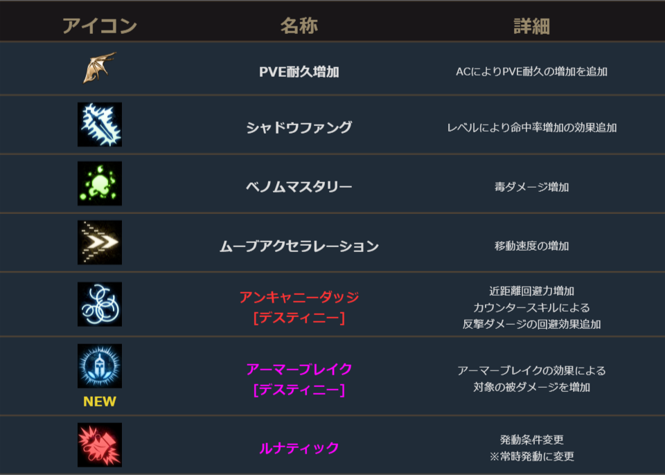 ダークエルフは新スキル1種追加、既存スキル5種変更。