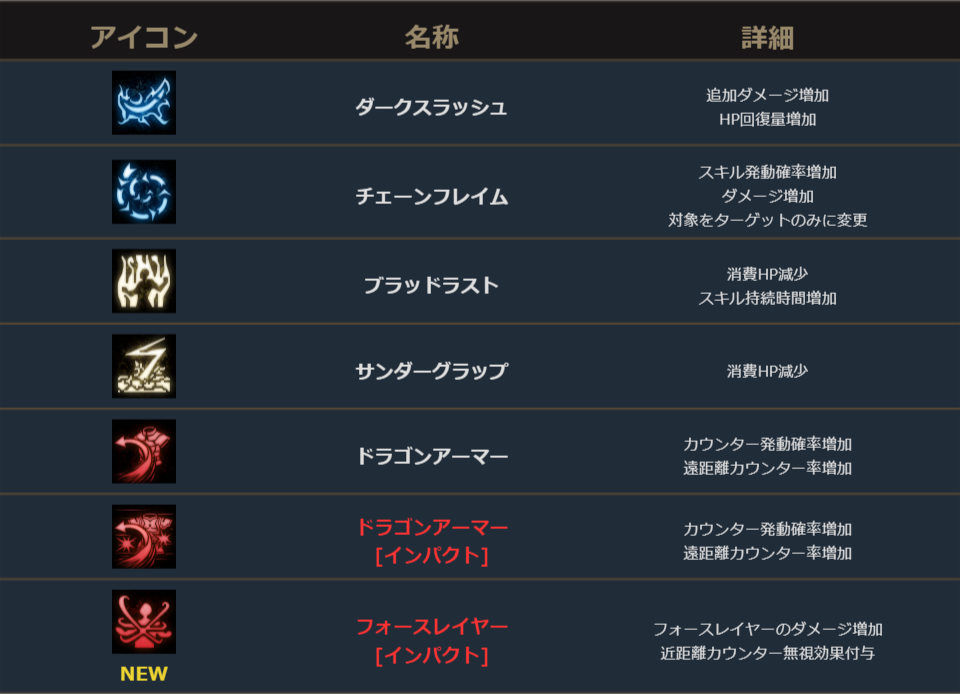 竜闘士は新スキル1種追加、既存スキル6種変更。