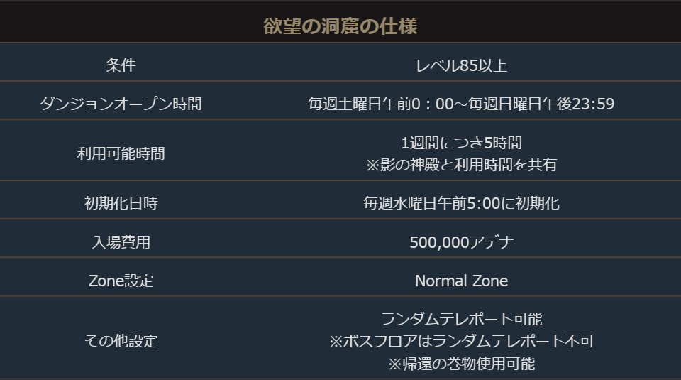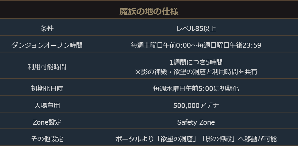 魔族の地は「欲望の洞窟」と「影の神殿」の2つのダンジョンに挑戦が可能になっています。