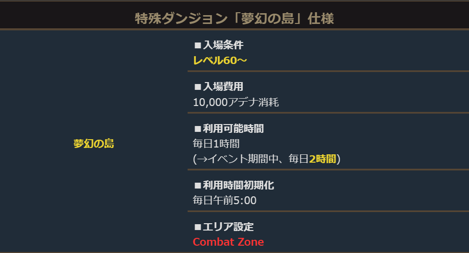 「夢幻の島」はレベル60~で利用可能な特殊ダンジョンです。