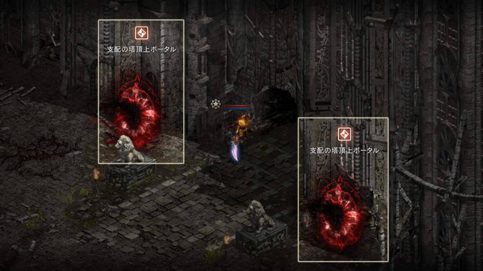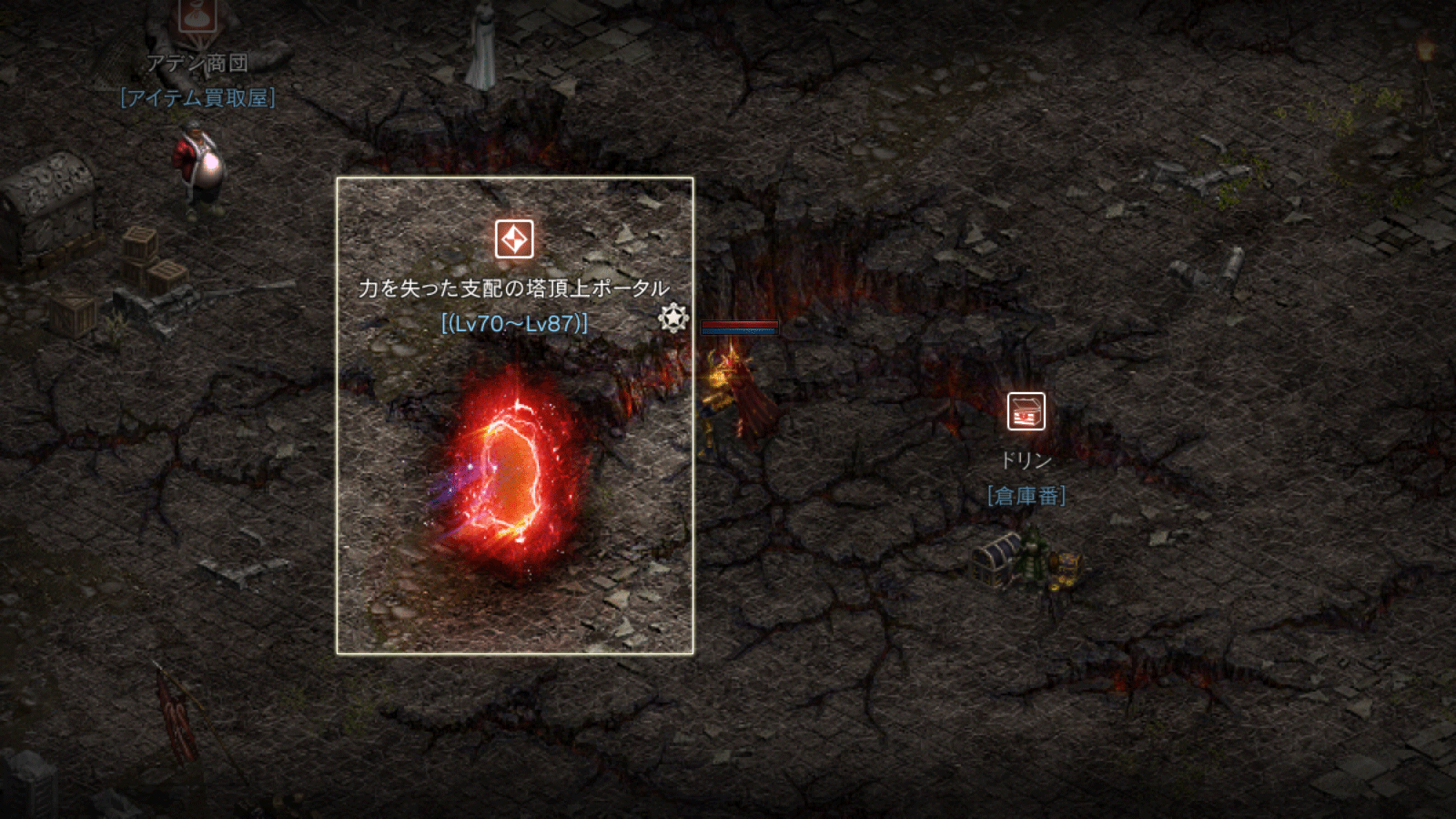 「支配の塔入口」から「力を失った支配の塔頂上ポータル[Lv70~87]」を選択する事で入場が可能です。