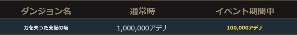 「力を失った支配の塔」の実装を記念して「支配の塔頂上ポータル[Lv70~87]」の費用を期間中通常よりも少ない金額で使用が可能になります。