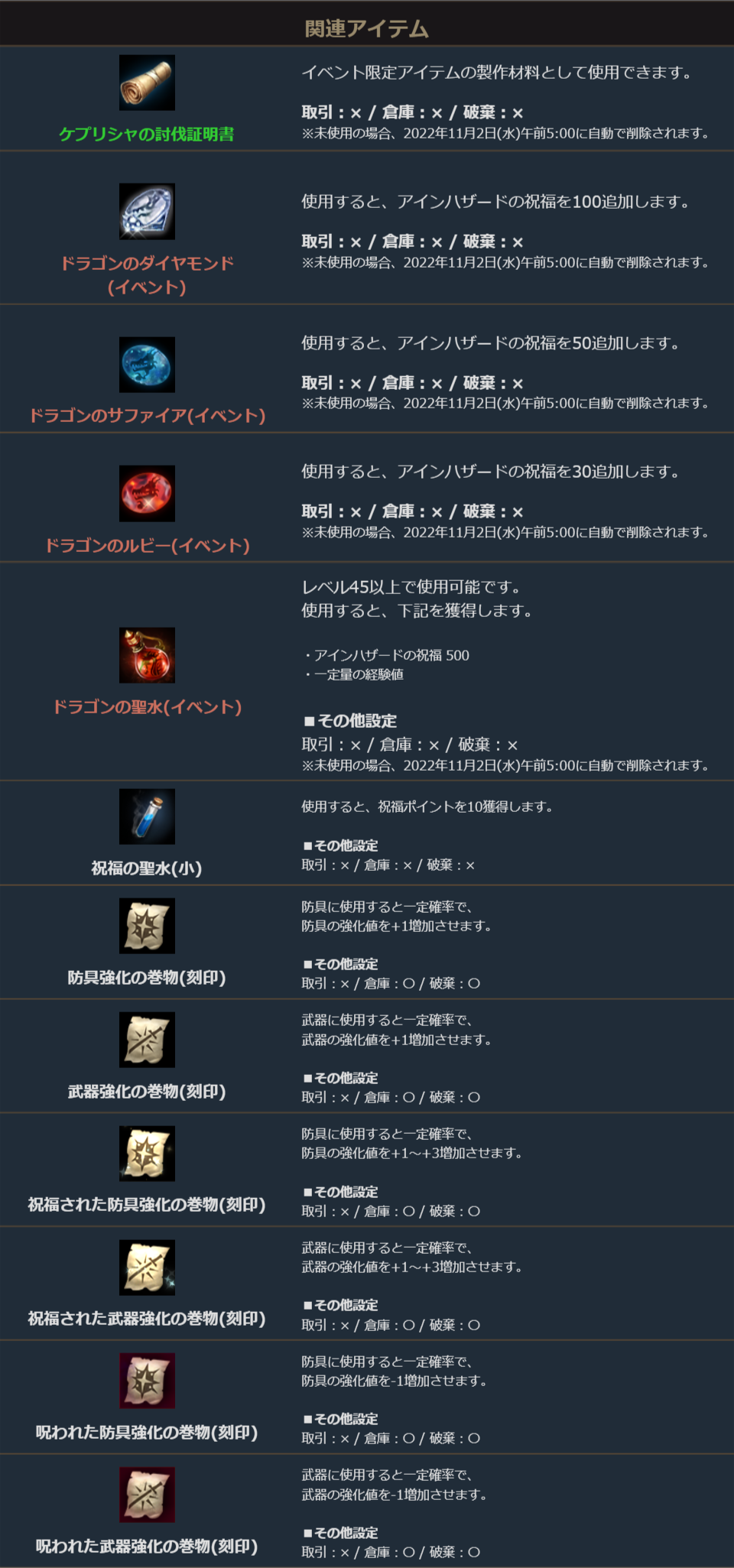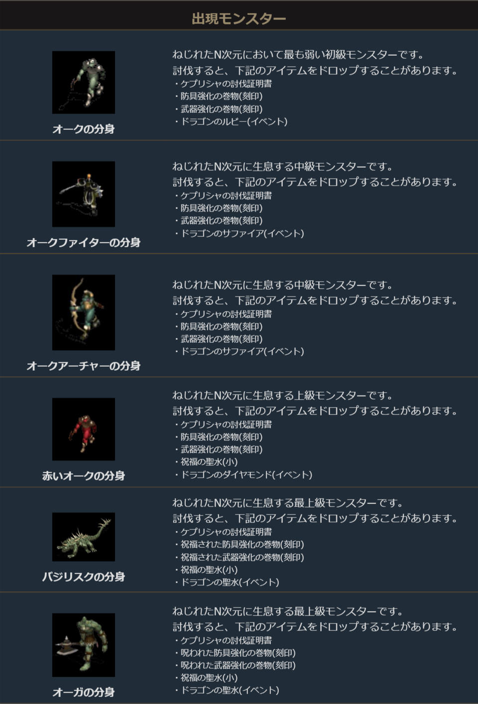 「ねじれたN次元」のモンスターを討伐すると、イベントアイテム「ケプリシャの討伐証明書」や、各種強化の巻物などが入手できます。