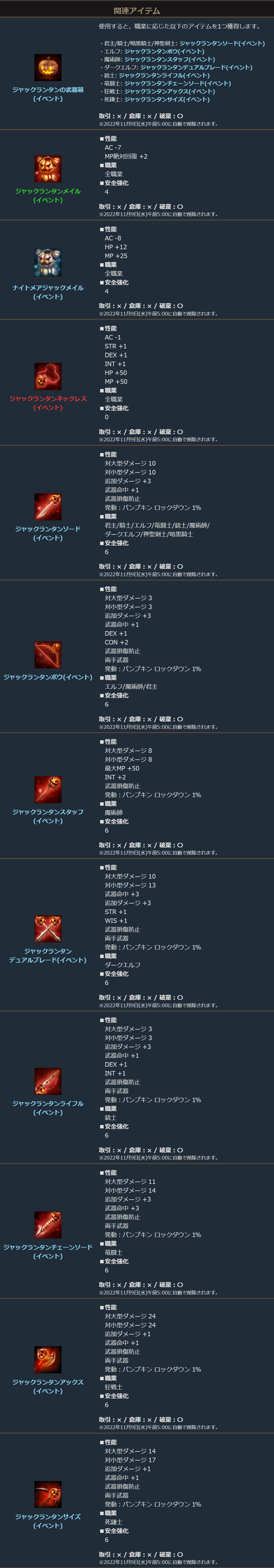 「ジャックランタンネックレス(イベント)」のアイテム説明につきまして一部修正いたしました。