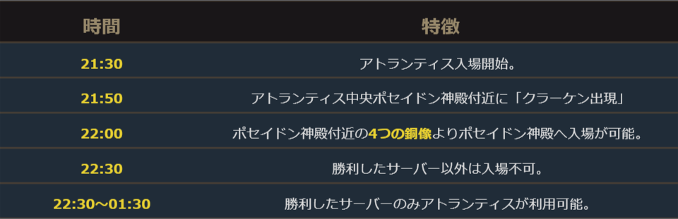 アトランティスのでは「ポセイドン神殿」にてボスを倒して「海神の王冠」を獲得したサーバーが勝利となります。