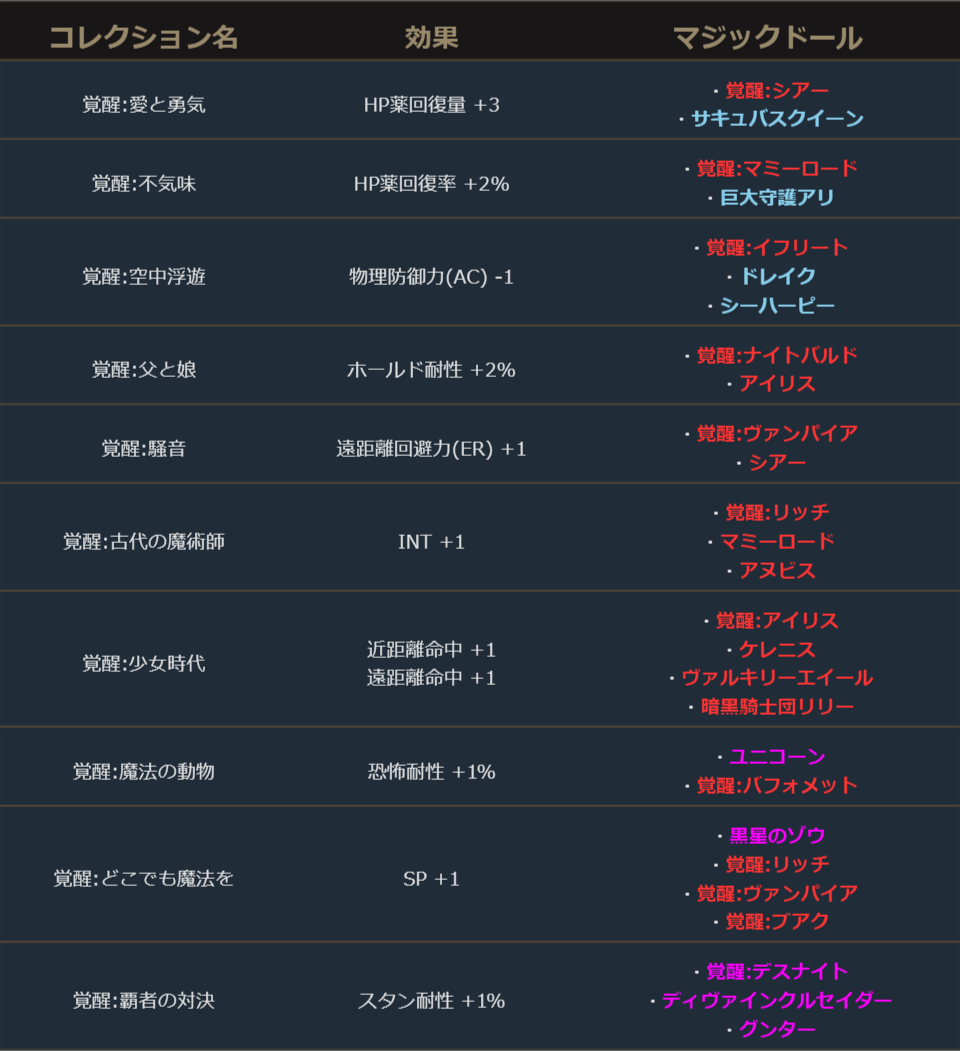 新たに、マジックドール覚醒コレクションを「英雄級コレクション7種類」「伝説級コレクション3種類」追加致しました。