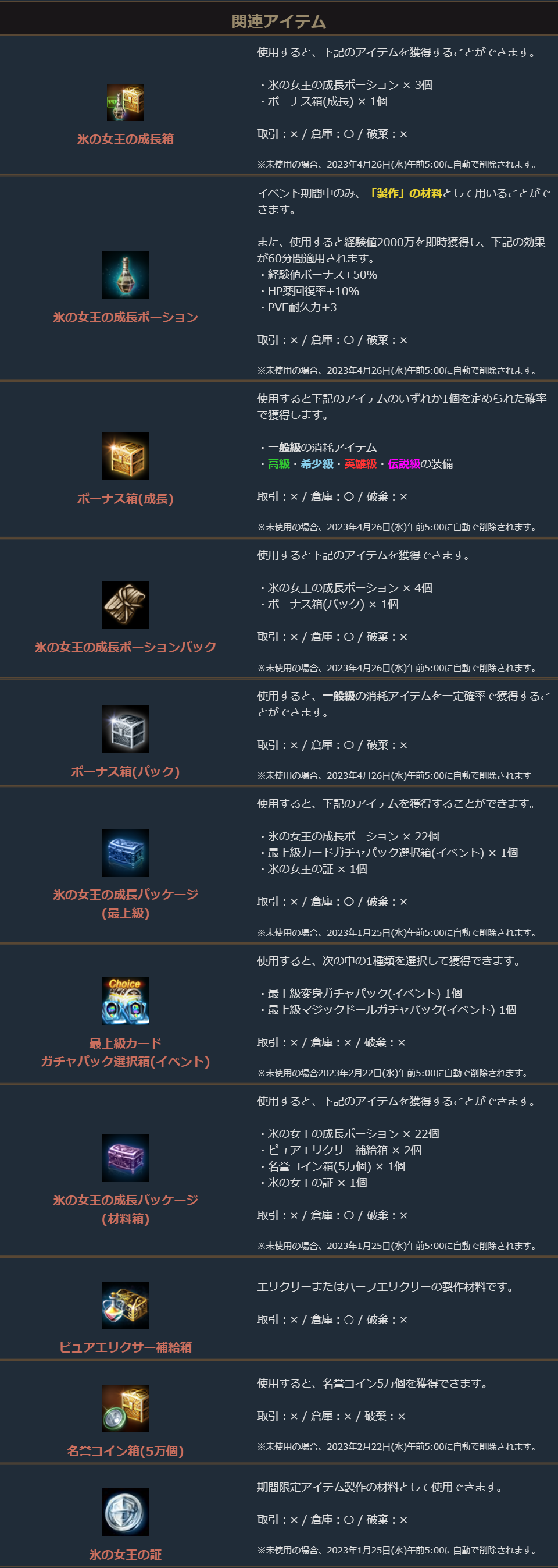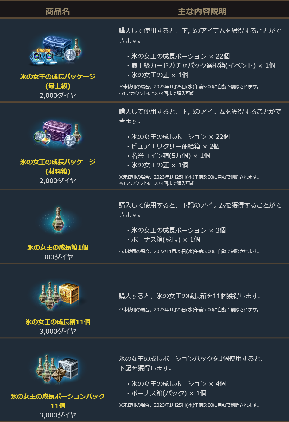 2022年12月28日より、ゲーム内ショップで販売を開始した「氷の女王の成長箱」についてご案内します。