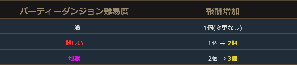 イベント期間中、特定の難易度のパーティダンジョン報酬が増加します。