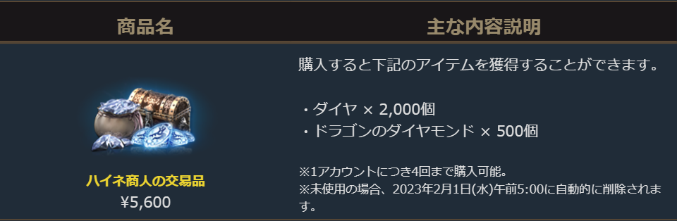 ダイヤに加え大量の「ドラゴンのダイヤモンド」が獲得できるお得なパッケージです。