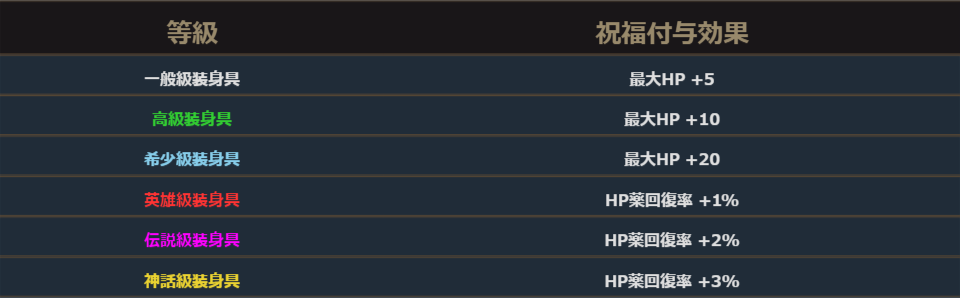 伝説級・神話級の装身具は祝福付与後にランダムのオプションが付与される「祝福強化」が可能になります。